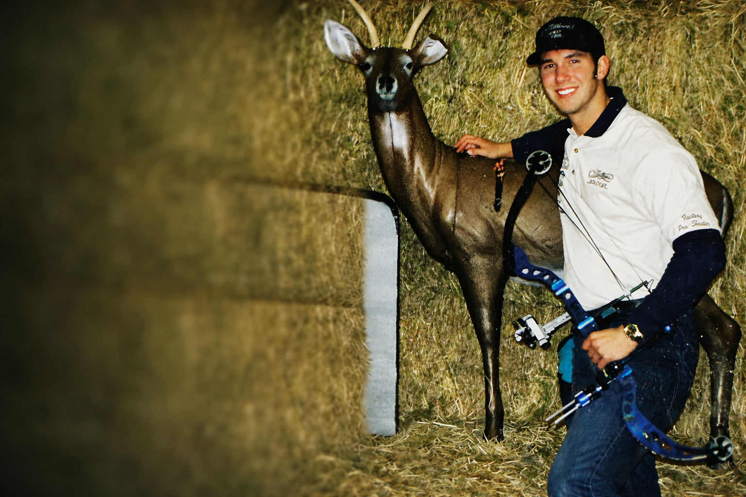 I’ve got a photo from early in my career that I keep coming back to: a younger version of me kneeling next to a 3D deer target with three arrows clustered tight in the vitals at 40 yards. That group marked the first time I ever broke through.